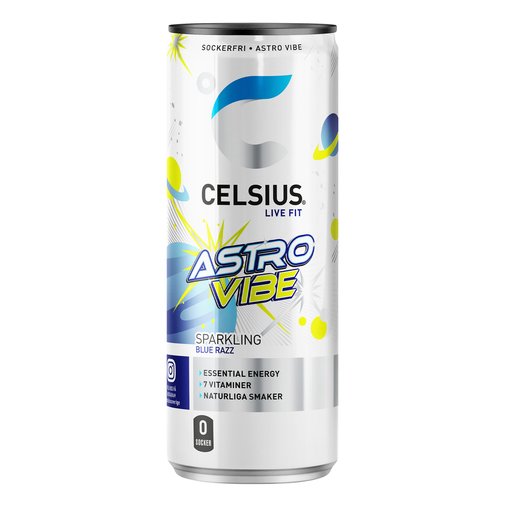 Celius Astro Vibe är en energidryck med smak av blå hallon.