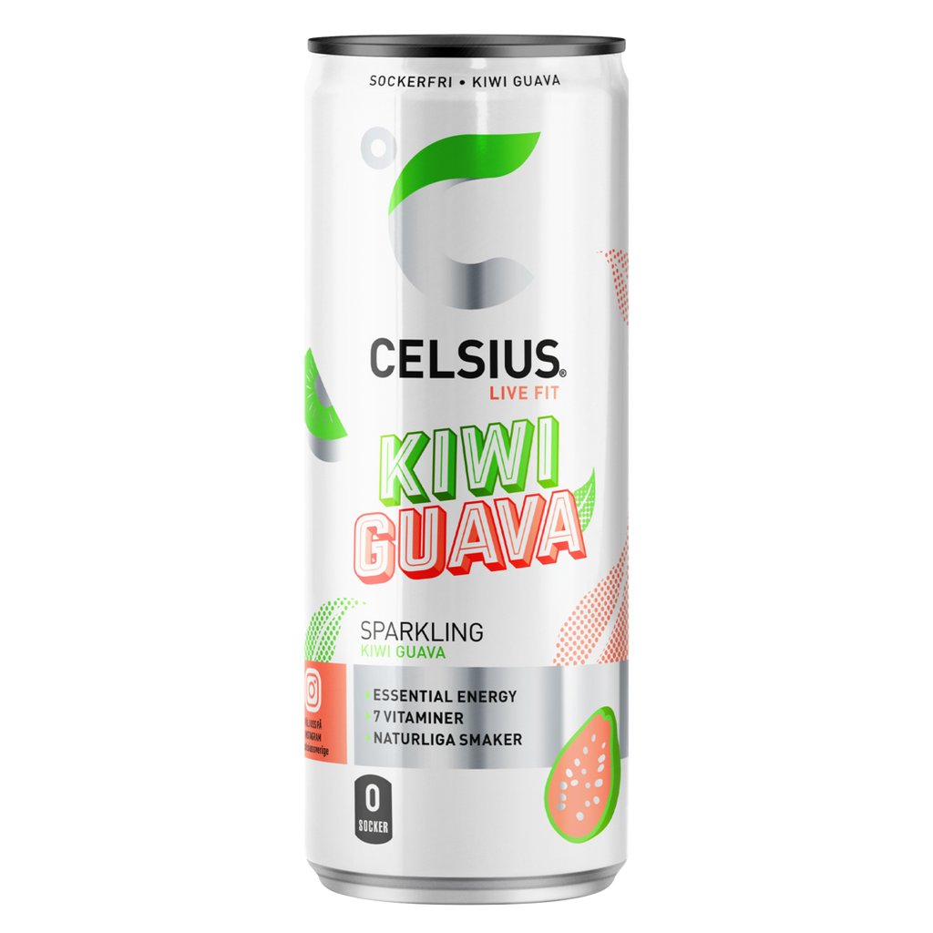 Njut av en uppfriskande smak med Celsius Kiwi Guava – en kolsyrad dryck som ger energi, fri från socker och fulladdad med vitaminer och naturliga ingredienser.