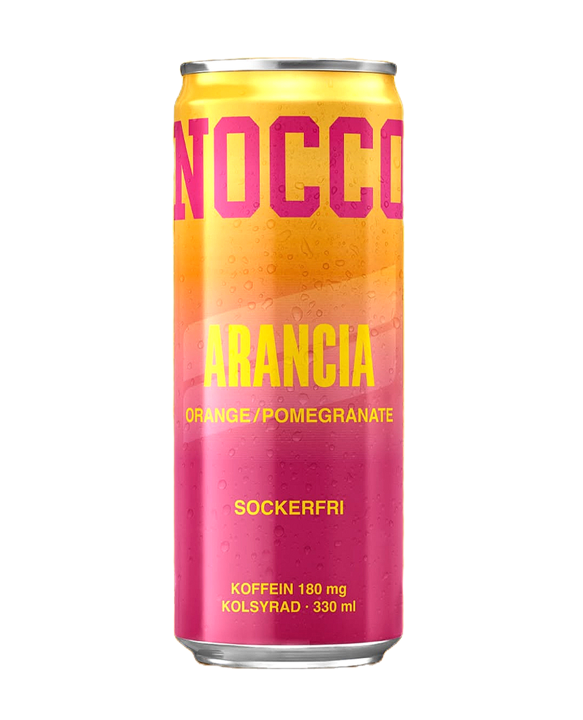 Nocco Arancia Summer Edition har en smak av apelsiner och granatäpplen. Den är lätt kolsyrad, sockerfri och innehåller BCAA och vitaminer. 180 mg koffein som bidrar till förbättrad koncentrations- och uthållighetsprestanda.