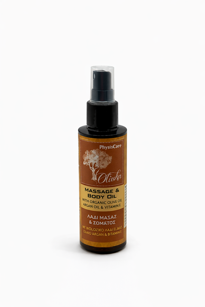 Massage & Body Care Oil är en rik, naturlig kroppsolja berikad med grekisk ekologisk olivolja, arganolja och vitamin E. Den återfuktar huden intensivt, vårdar och hjälper till att bevara hudens naturliga smidighet.