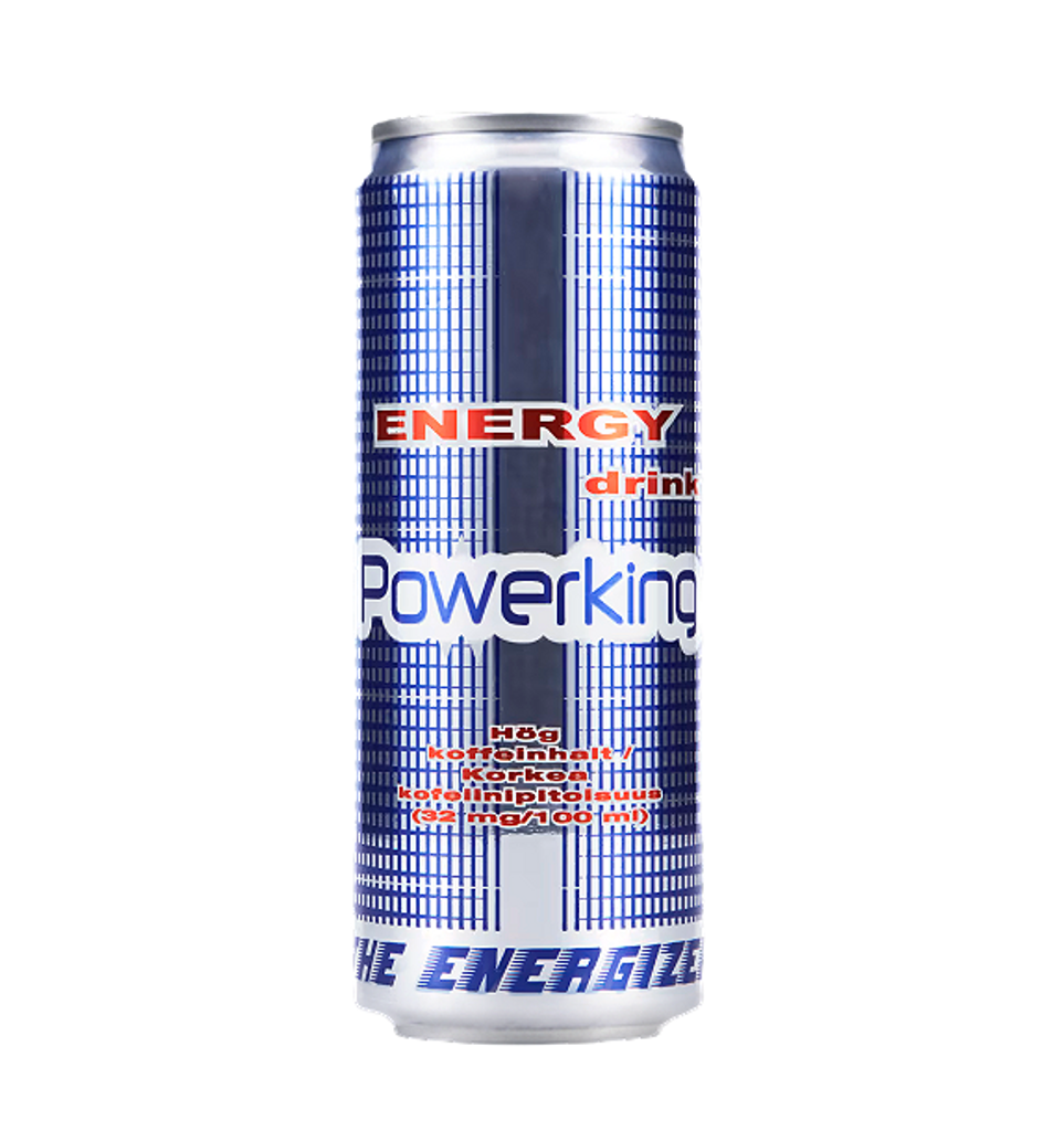 Energidrycken Powerking "The energizer" är en kolsyrad energidryck med taurin och koffein.