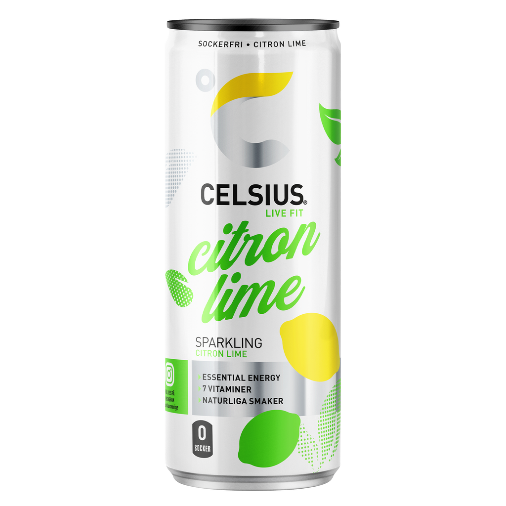 Upplev uppfriskande smak med Celsius Citron Lime. Innehåller vitaminer, grönt te och guarana för en sockerfri energikick.